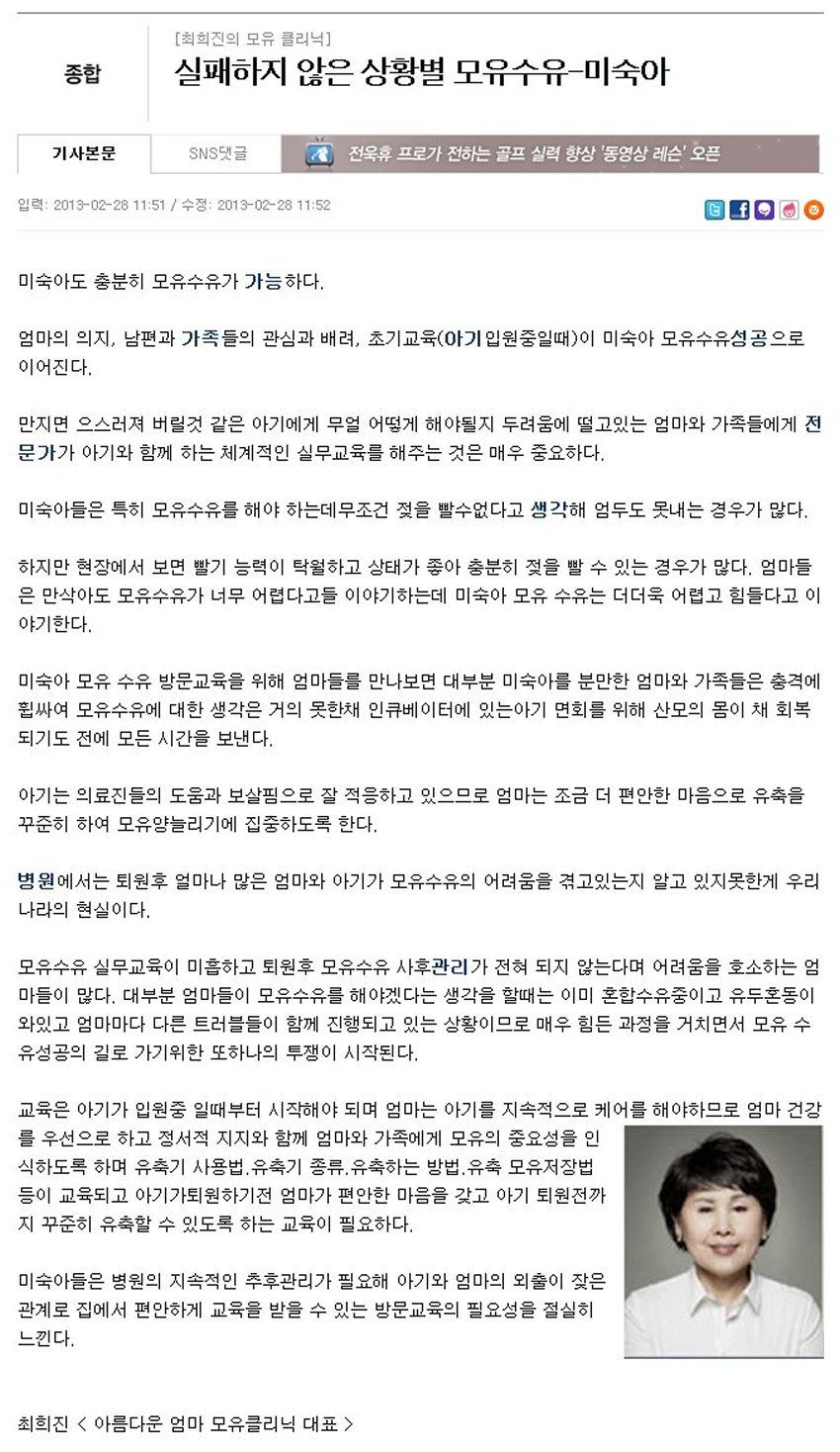 실패하지 않는 상황별 모유수유 - 미숙아 (한국경제)