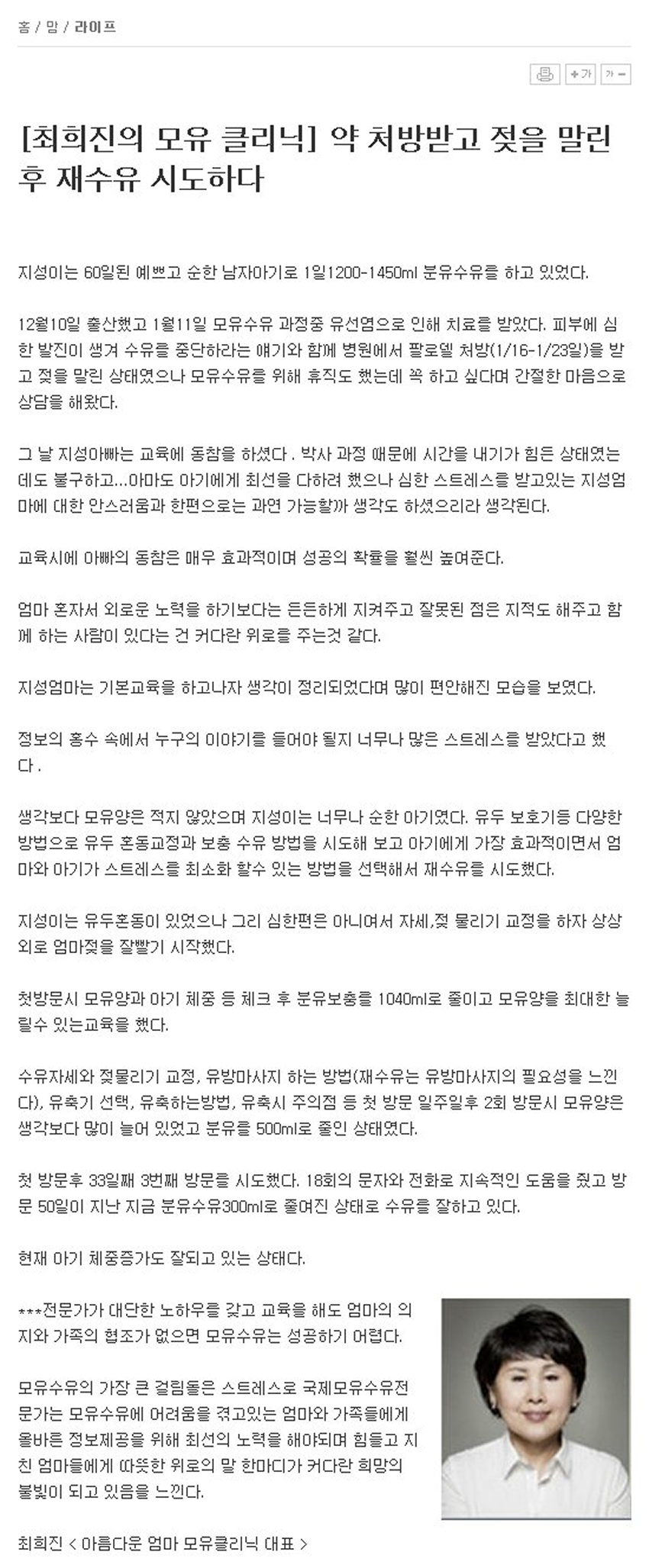 약 처방받고 젖을 말린 후 재수유 시도하다 (한국경제)