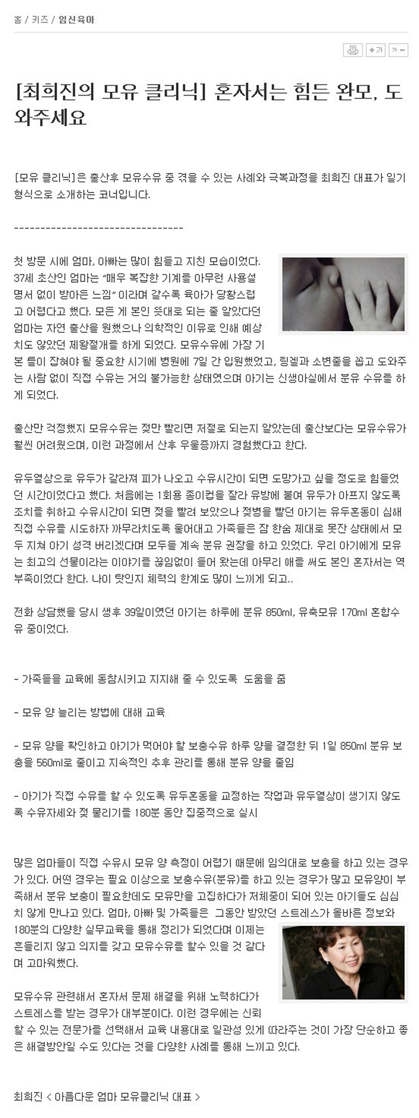 혼자서는 힘든 완모, 도와주세요 (한국경제)