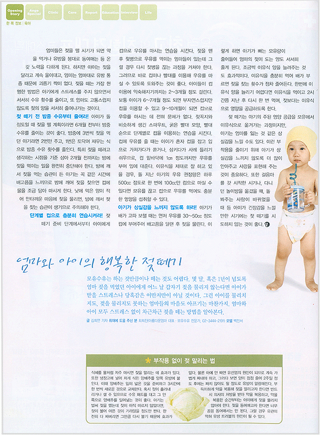 월간앙쥬 2006년 10월호 "엄마와 아이의 행복한 젖떼기" 대표 최희진 인터뷰