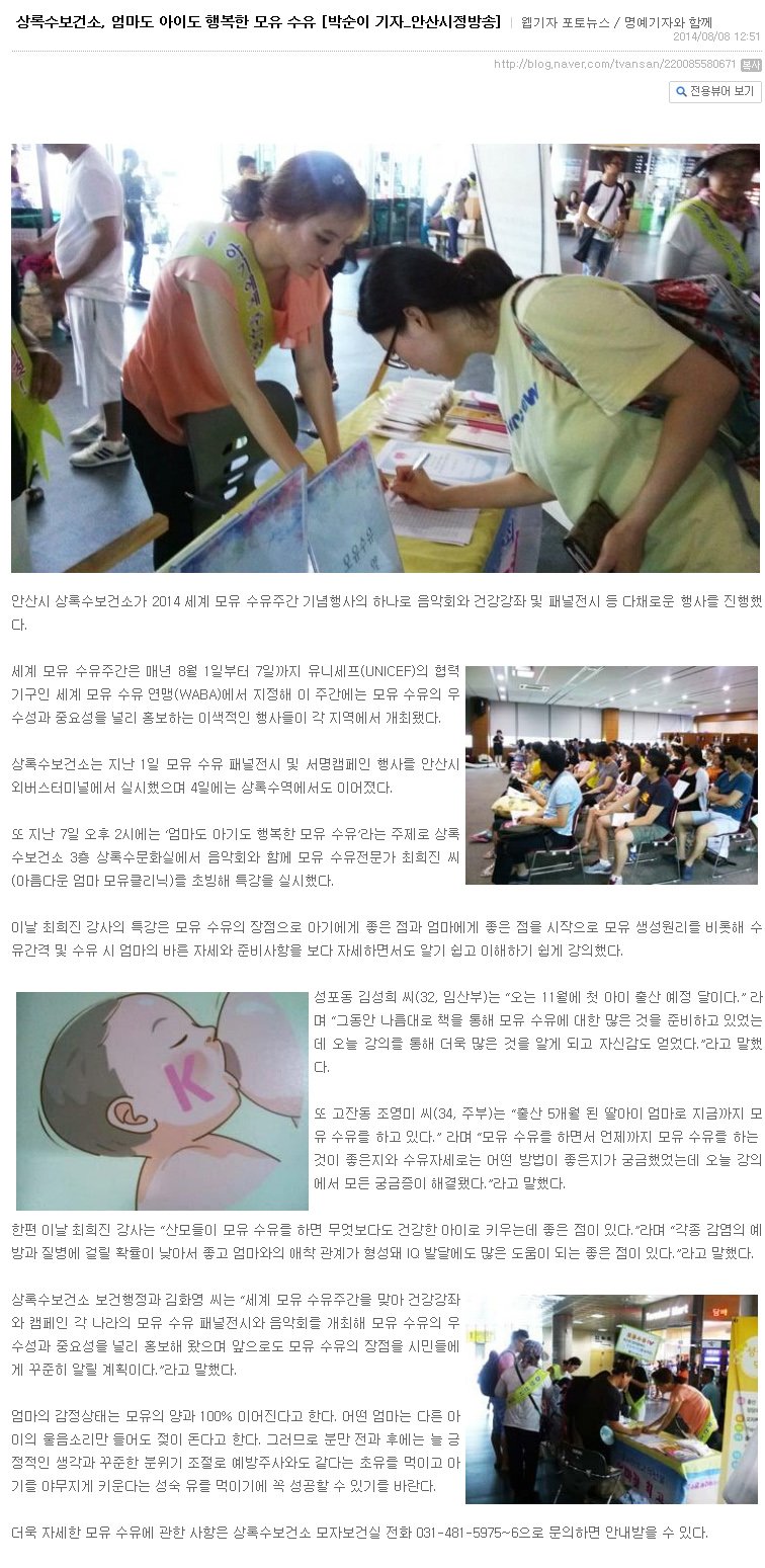 세계 모유수유 주관 안산시 상록수보건소 특강