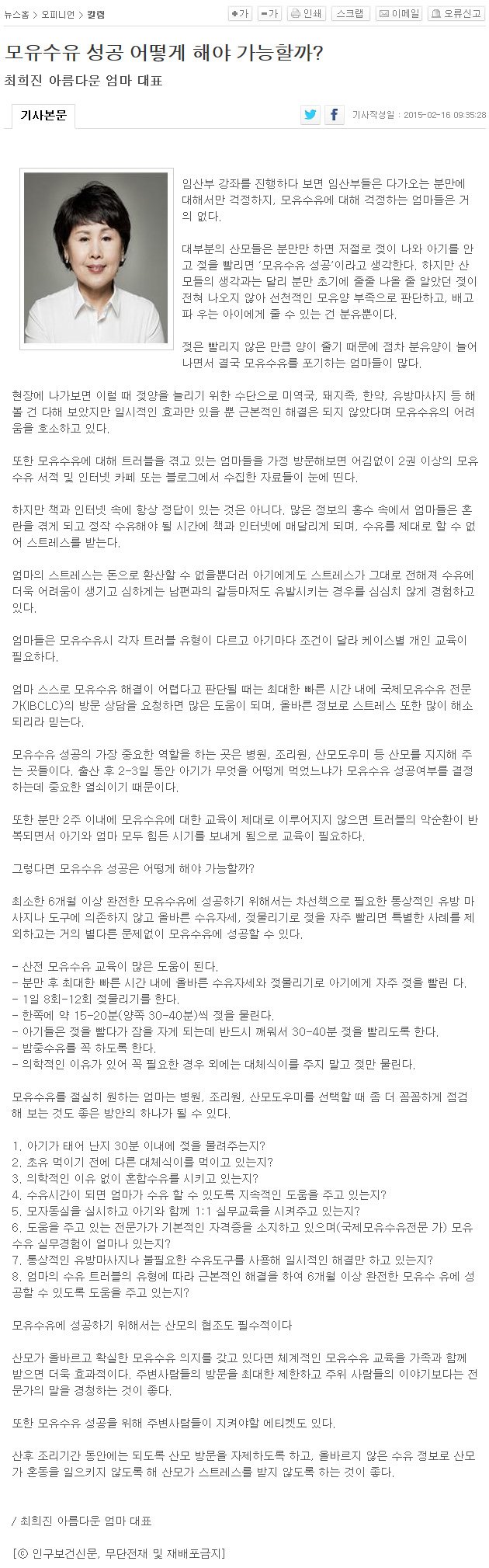 인구보건신문 - 모유수유 성공 어떻게 해야 가능할까