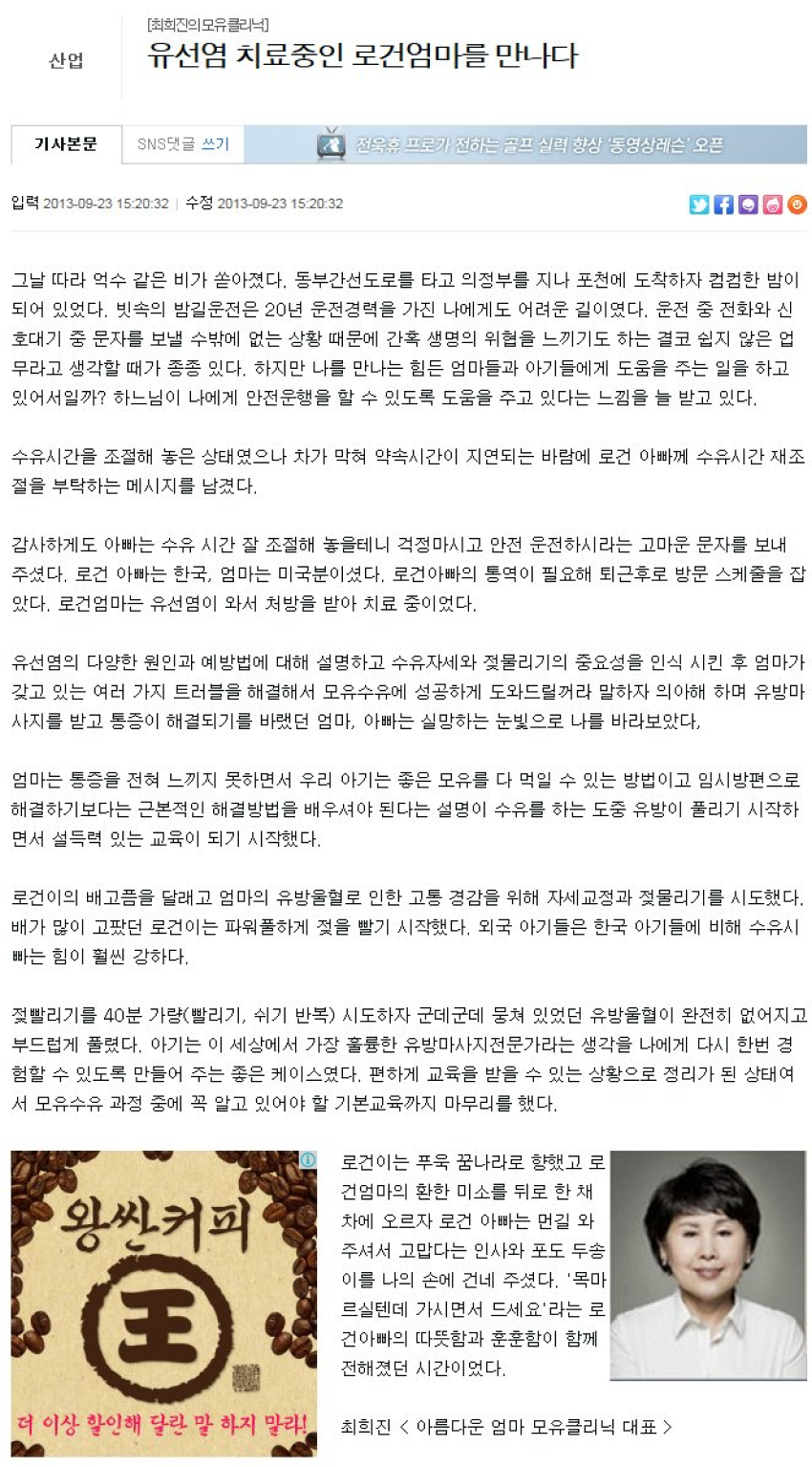 유선염 치료중인 로건엄마를 만나다 (한국경제)