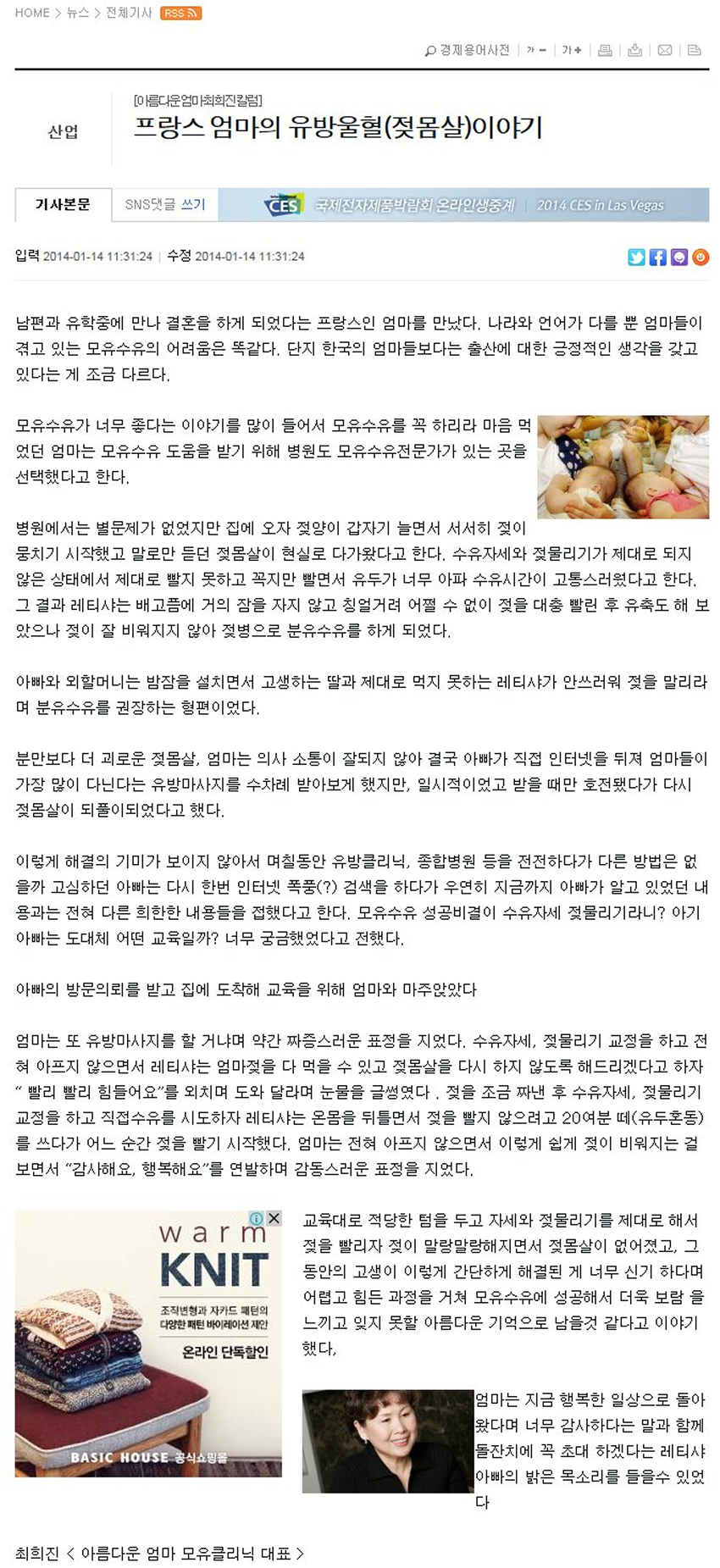 프랑스엄마의 유방울혈(젖몸살) 이야기 (한국경제)