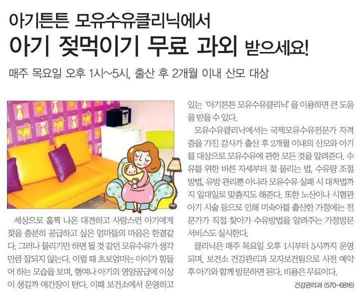 2008년도 4월 3일부터 "모유수유 클리닉"을 운영합니다.