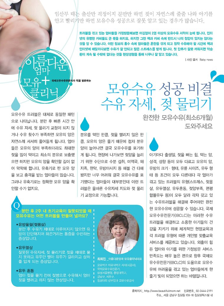 모유수유 성공비결 - 수유자세, 젖물리기 (최희진대표 칼럼게재)